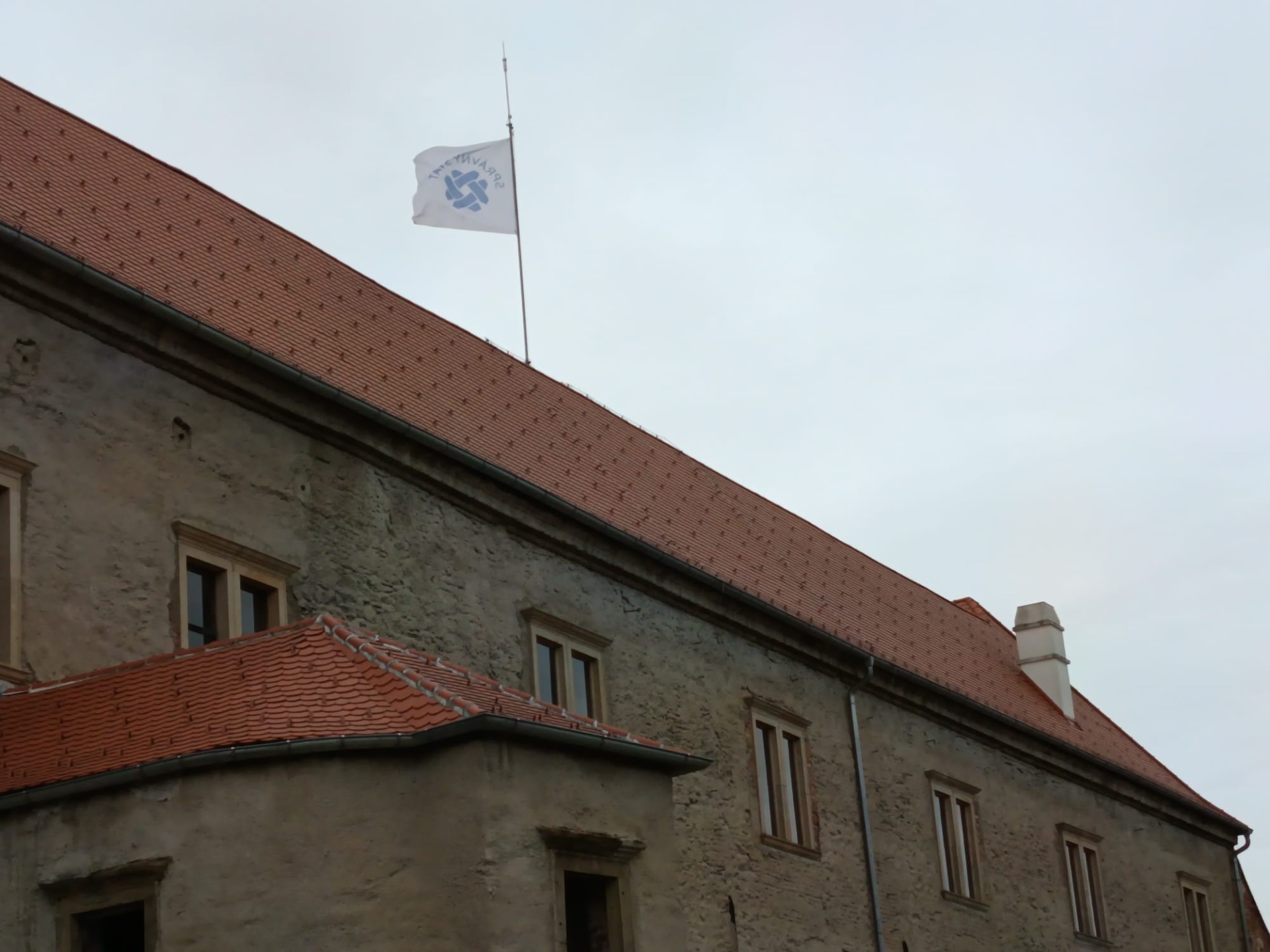 Prapor Hnutí Správný Stát (HSS) na hradě a zámku Dolní Kounice,